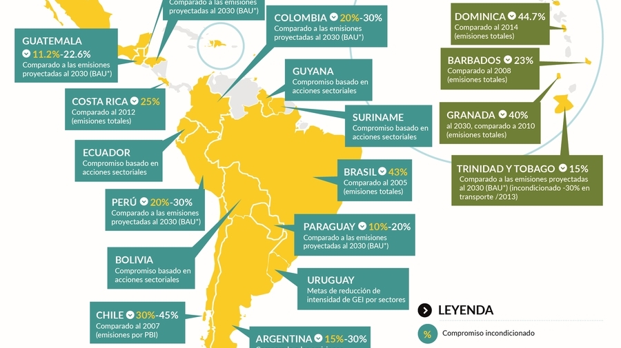 Si bien Latinoamérica y el Caribe representan solo el 7% de las emisiones del planeta (9.6% si se incluye las emisiones vinculadas a la deforestación y uso del suelo), es importante que cada país tenga un compromiso de reducción, para sumar al esfuerzo global. Además la acción climática no es aislada, se enmarca en una transición hacia un crecimiento sostenible y genera co-beneficios concretos para los ciudadanos.
